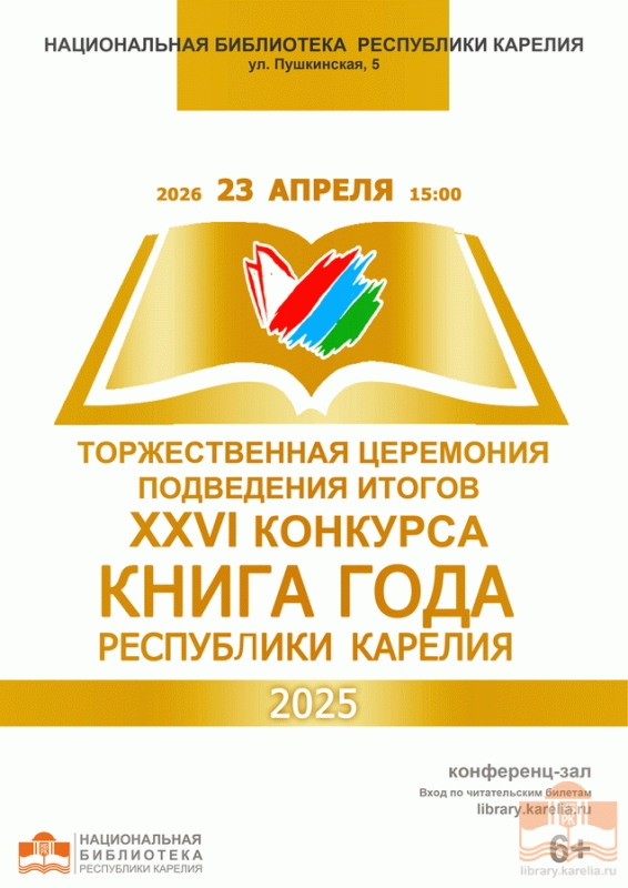 Национальная библиотека Республики Карелия в 15-й раз присоединяется к Всероссийской акции «Библионочь-2026», которая пройдет 18 апреля. Тема этого года – «Единство народов – сила России» – призвана подчеркнуть многообразие культур и единство нашей великой страны через призму литературы и библиотечных пространств. 16 апреля 2026 Торжественная церемония подведения итогов конкурса «Книга года Республики Карелия – 2025»
