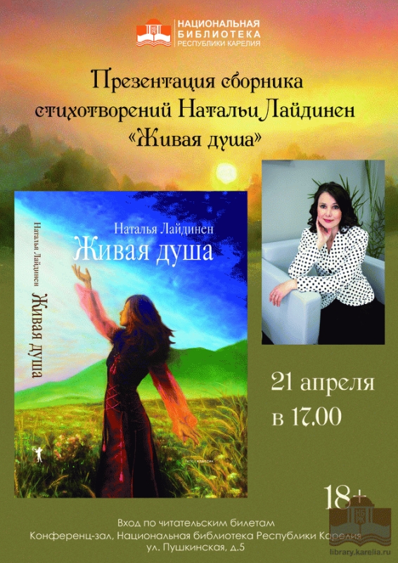 21 апреля в 17:00 в Национальной библиотеке Карелии состоится презентация нового сборника стихотворений Натальи Лайдинен «Живая душа». 24 марта 2026 НЕДЕЛЯ ДЕТСКОЙ КНИГИ – 2026