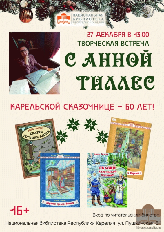 27 декабря 2025 Национальная библиотека Республики Карелия приглашает взрослых любителей сказок на творческую встречу с Анной Тиллес. Встреча состоится 27 декабря в 13:00 в большом читальном зале. 06 декабря 2025 6 декабря в 14:00 в Национальной библиотеке Карелии состоится презентация книги карельского литератора Павла Николаевича Сысоева «Щука с волчьим хвостом», вышедшей в свет в петрозаводском издательстве «Версо». 04 декабря 2025 Егор Сергеев – поэт из Петрозаводска, участник Электронной библиотеки авторов Карелии. Практически каждый год приезжает в родной Петрозаводск. В 2025 году время встречи назначено: 4 декабря в 20:00. 23 октября 2025 В этом году на фестиваль пришло более 2000 заявок почти из всех регионов России. Главный приз «Филатов фест – 2025» получил Егор Сергеев – поэт из Петрозаводска, участник Электронной библиотеки авторов Карелии. ПОЗДРАВЛЯЕМ! 06 октября 2025 Национальная библиотека Республики Карелия приглашает маленьких и взрослых любителей приключений на презентацию новой книги Ильи Полуницына «Пятое колесо». Событие состоится 6 октября в 13:00 в Большом читальном зале Национальной библиотеки. 02 октября 2025 2 октября в 16:00 в Национальной библиотеке Республики Карелия состоится вечер памяти, посвящённый 130-летию со дня рождения Рихарда Зорге - выдающегося разведчика, журналиста и героя советской разведки, чьи действия в годы Второй мировой войны оказали решающее влияние на ход истории. 23 июня 2025 Презентация книги «Перстень волхва»